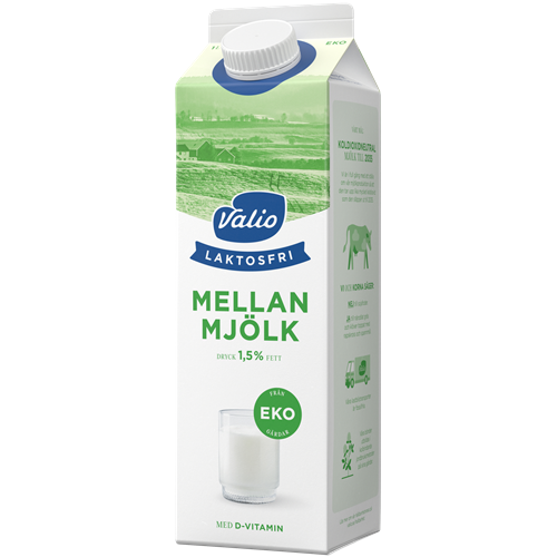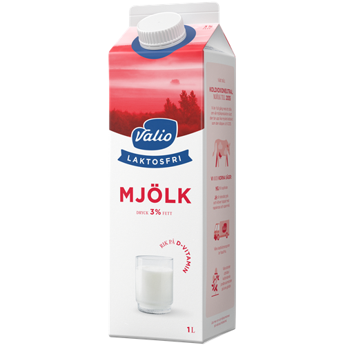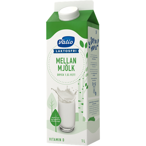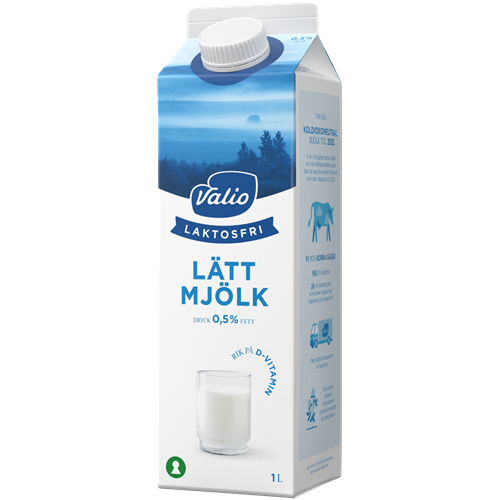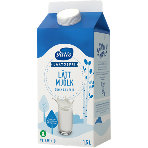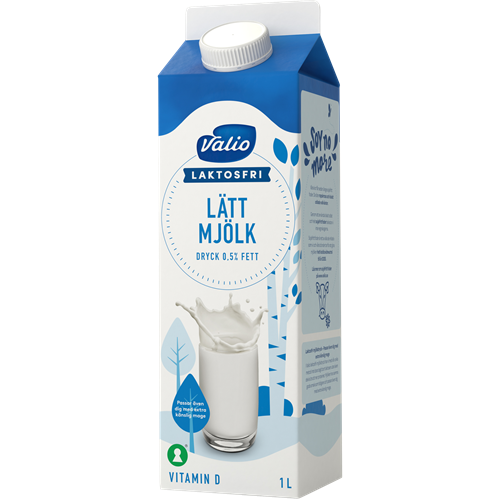 Valios laktosfria mjölk är anpassad för dig som är känslig mot laktos men som fortfarande vill njuta av ett glas mjölk, eller använda mjölk som en ingrediens i bakning och matlagning. Vi har tillsatt extra D-vitamin i mjölken för att underlätta det dagliga intaget av D-vitamin, som är en viktig källa till starkare skelett och tänder. Vår laktosfria mjölk finns med olika fetthalter; lättmjölk 0,5%, mellanmjölk 1,5% och standardmjölk 3%.