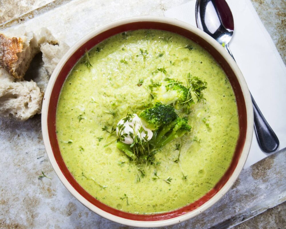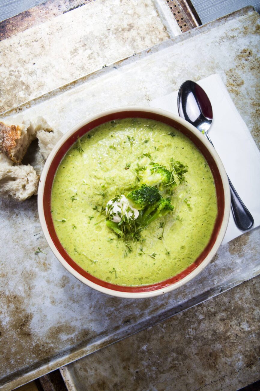 - Mixa soppan slät med matlagningsgrädde och bladspenat