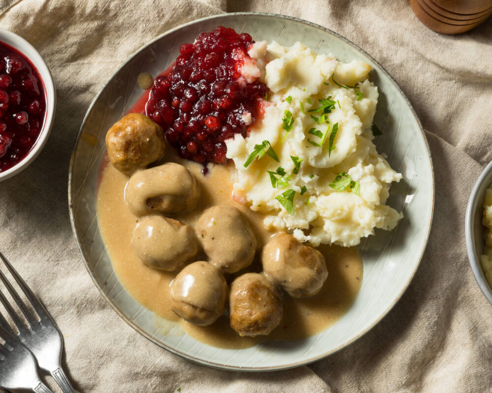 - Smält smör i en kastrull eller stekpanna och vispa ner mjöl och lite av grädden till en tjock stuvning. Gärna i samma panna som du tidigare stekt köttbullarna i.