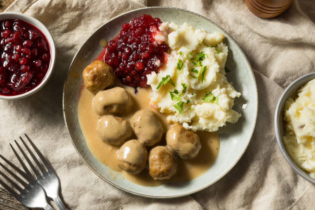 - Smält smör i en kastrull eller stekpanna och vispa ner mjöl och lite av grädden till en tjock stuvning. Gärna i samma panna som du tidigare stekt köttbullarna i.