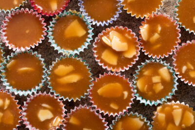 - Smält choklad och blanda i hackade och rostade hasselnötter. Doppa pavlovorna i marängen och låt rinna av och stelna på ett galler.