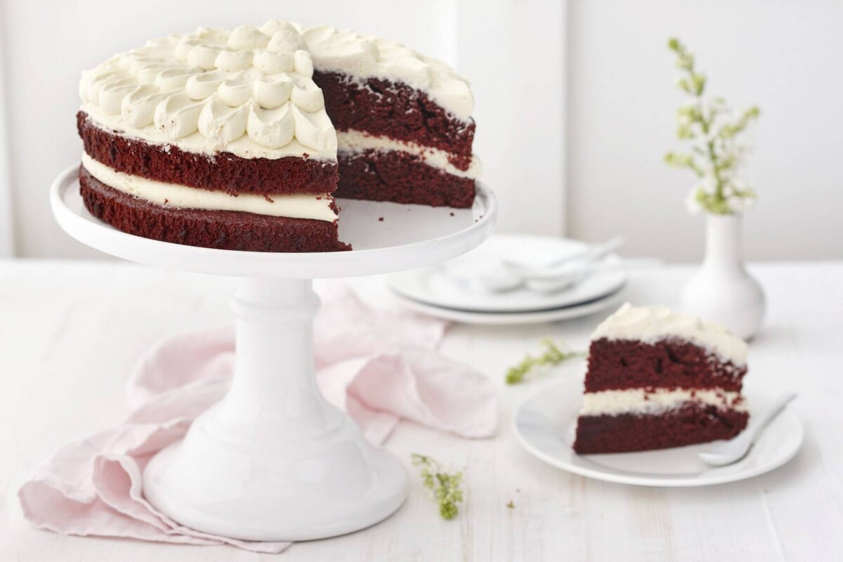 - Vispa färskost, grädde och socker. Fyll en spritspåse, klipp en öppning på ca 1 cm i ø på påsens spets. Spritsa ut hälften av fyllningen mellan tårtbottnarna och spara den andra hälften till dekoration.