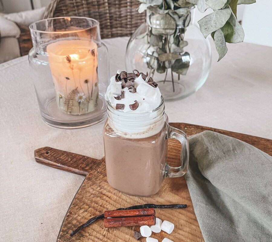 - Mixa med stavmixer så att den varma chokladen blir lite skummig. Servera med vispad grädde, mini-marshmallows och riven choklad.